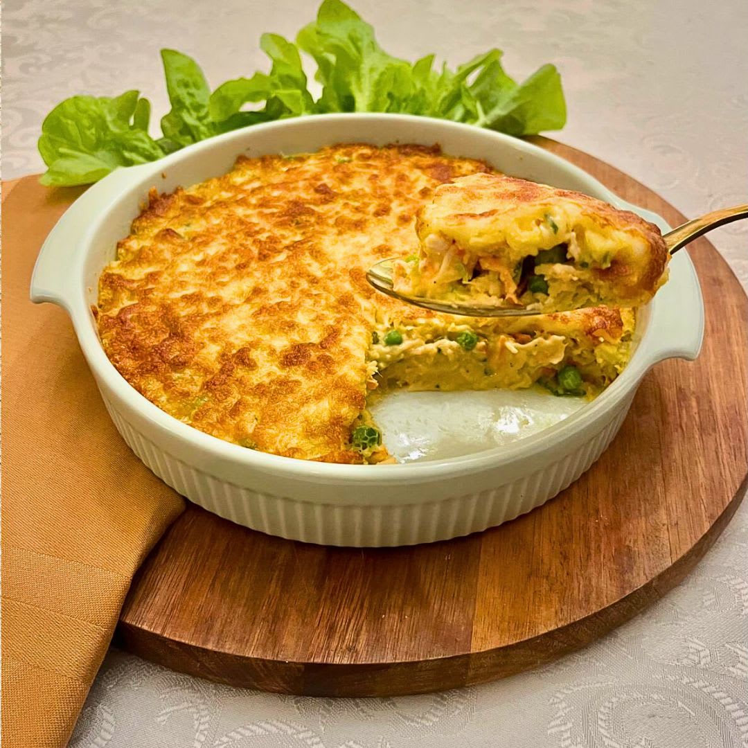 TORTA CREMOSA DE FRANGO COM LEGUMES SEM FARINHA