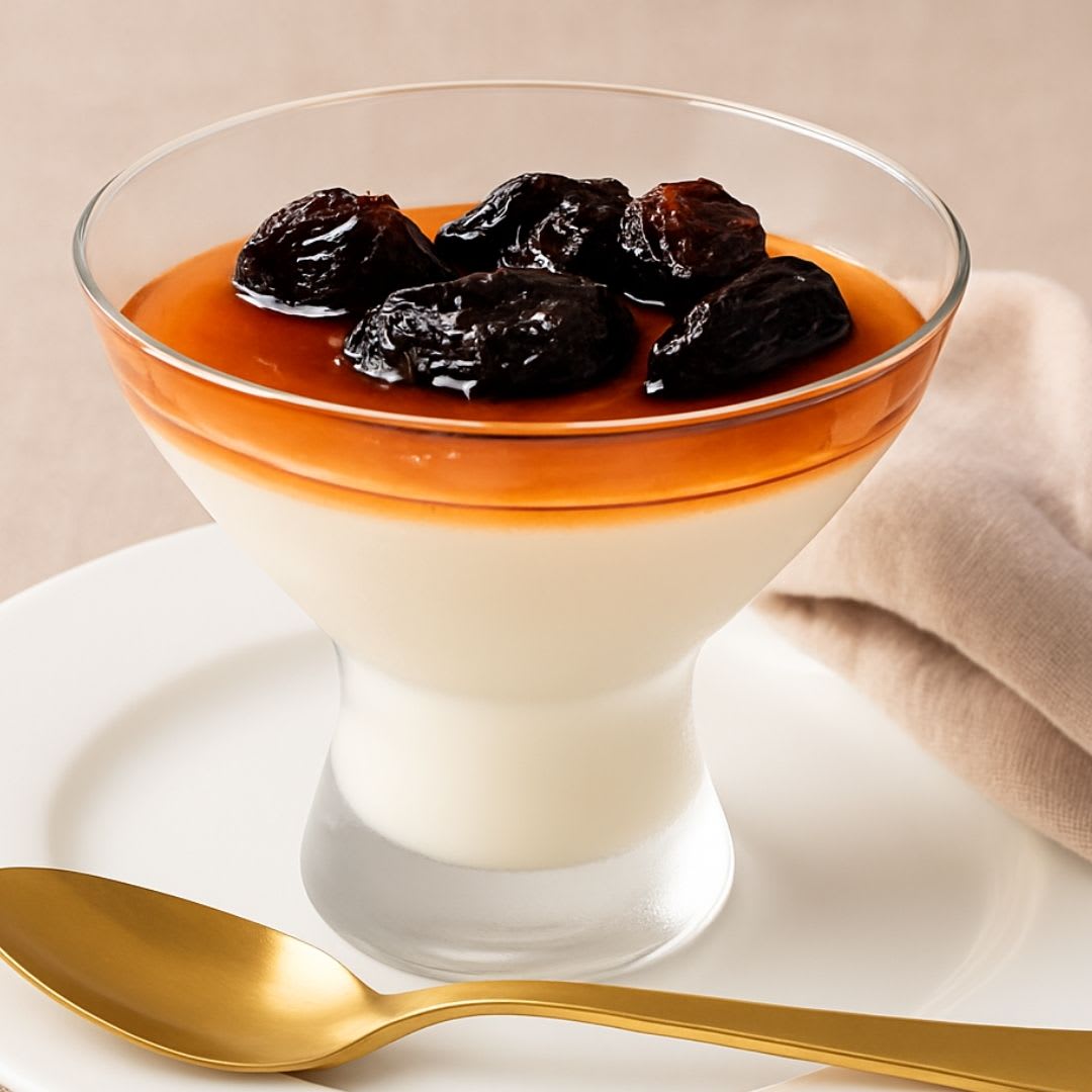 Sobremesa leve e cremosa: manjar branco super fácil com 2 ingredientes básicos e calda de ameixa sem açúcar refinado